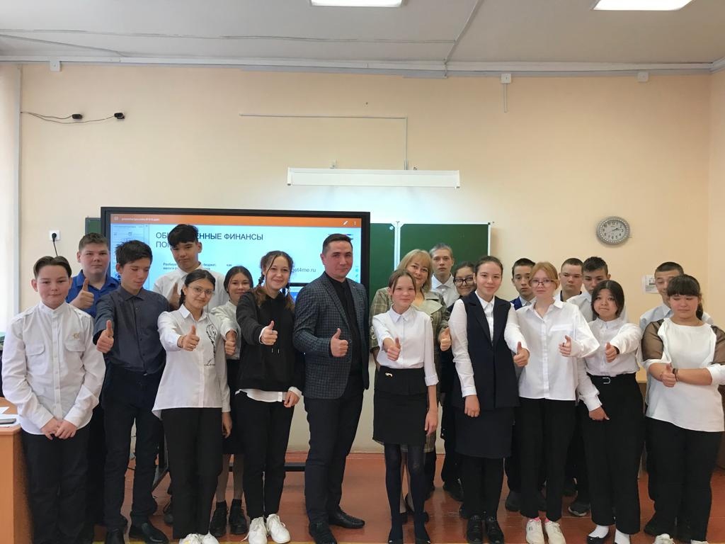 В рамках информационной региональной акции "День знаний о налогах" на базе МОБУ СОШ с. Ермекеево учитель обществознания Сафиуллина Зинфира Зинуровна организовала встречу обучающимся 8а класса с замом главы администрации Ермекеевского района по финансам Рахимовым Айнуром Гамировичом. В непривычной обстановке учитель провела занятие по финансовой грамотности для обучающихся 8а класса, где дети отвечали на интересные вопросы учителя в сфере финансов, на листочках изображали свое хобби, для ведения которого обязательно нужен стартовый капитал, в итоге занятия детям была проведена словарная работа с применением весов на чашу которых обучающиеся выставляли словарные слова которые знают и которые еще предстоит изучить на занятиях нового курса финансовой грамотности. Заместитель главы администрации по финансам Рахимов А. Г. отвечал на вопросы обучающихся, которые касались бизнеса, самозанятого человека, налогов и различных целевых программ, оказываемых со стороны государства гражданам РФ. Обучающиеся 8а класса попросили дополнительную встречу с гостем, но уже с заранее подготовленными вопросами в сфере финансовой стабильности и безопасности населения.