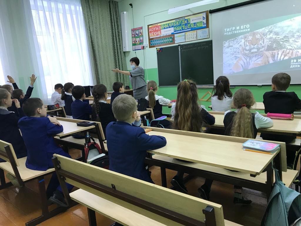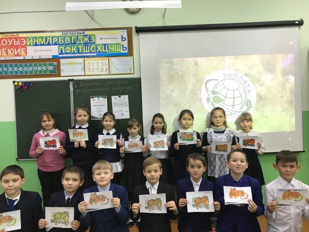 Обучающиеся 3б класса МОБУ СОШ с. Ермекеево приняли участие во Всероссийском уроке «Эколята- молодые защитники природы» по теме «Тигр и его родственники».