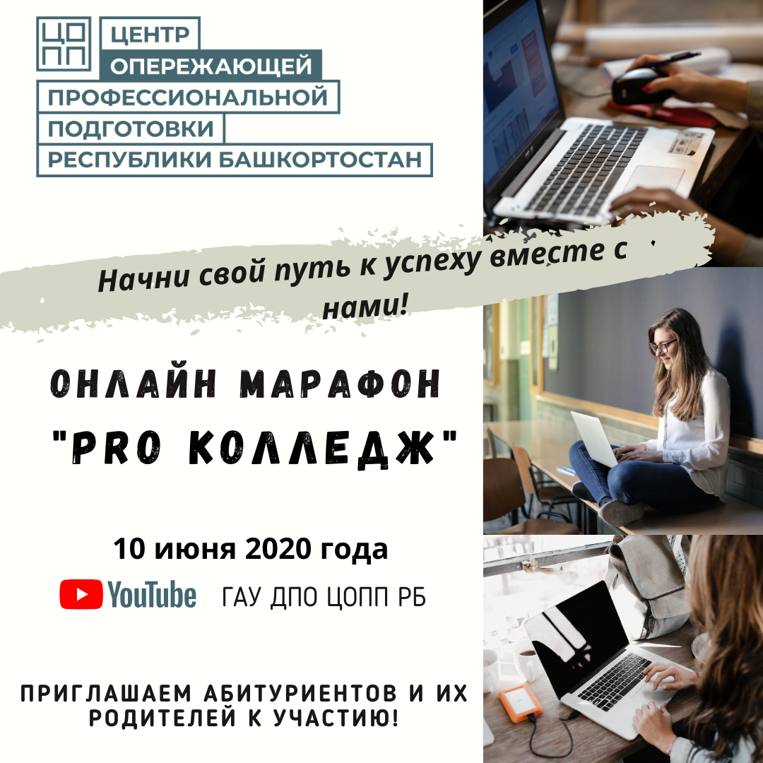 В рамках проекта «Профсреда», который реализует ГАУ ДПО «Центр опережающей профессиональной подготовки Республики Башкортостан», 10 и 26 июня 2020 года с 10.00 до 19.00 для абитуриентов и их родителей пройдет онлайн-марафон «PROколледж». Трансляция марафона осуществляется на Youtube-канале ГАУ ДПО ЦОПП РБ. В марафоне примут участие более 50 колледжей Республики Башкортостан, расположенные в городах: Уфа, Стерлитамак, Салават, Мелеуз, Благовещенск, Туймазы, Дюртюли, Нефтекамск, Учалы, Белорецк, Сибай, Октябрьский и других. С приветственным словом к будущим абитуриентам обратится заместитель министра образования и науки РБ Инесса Васильевна Косолапова. Специфика данного онлайн-марафона в том, что он будет посвящен особенностям приемной кампании в 2020 году и станет виртуальным навигатором для абитуриентов. Участники марафона узнают о востребованных специальностях, познакомятся с основными изменениями в правилах подачи документов в 2020 году: - дистанционная форма подачи документов; - документы, необходимые абитуриенту для отправки по электронной почте; - информация о сроках приема документов и др. У абитуриентов и их родителей будет возможность подробнее узнать о колледжах и о специальностях обучения. Представитель каждой профессиональной образовательной организации представит свой колледж и расскажет о перечнях направлений подготовки образовательных программ, по которым проводится прием. Также во время онлайн-марафона будет возможность узнать ответы задать на интересующие вопросы, что позволит лучше сориентироваться в многообразии профессиональных образовательных организаций республики. В настоящий момент на Youtube-канале ГАУ ДПО ЦОПП РБ можно ознакомиться с видеовизитками колледжей Республики Башкортостан.https://www.youtube.com/watch?v=iWZ79aCvnno